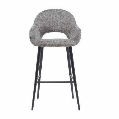 Grauer gepolsterter Stuhl. Textilsitz mit Innenausstattung sperrholz und schaum. Schwarze Metallbeine. Maßnahmen: Tiefe: 53 cm Breite: 53 cm Höhe: 103 cm