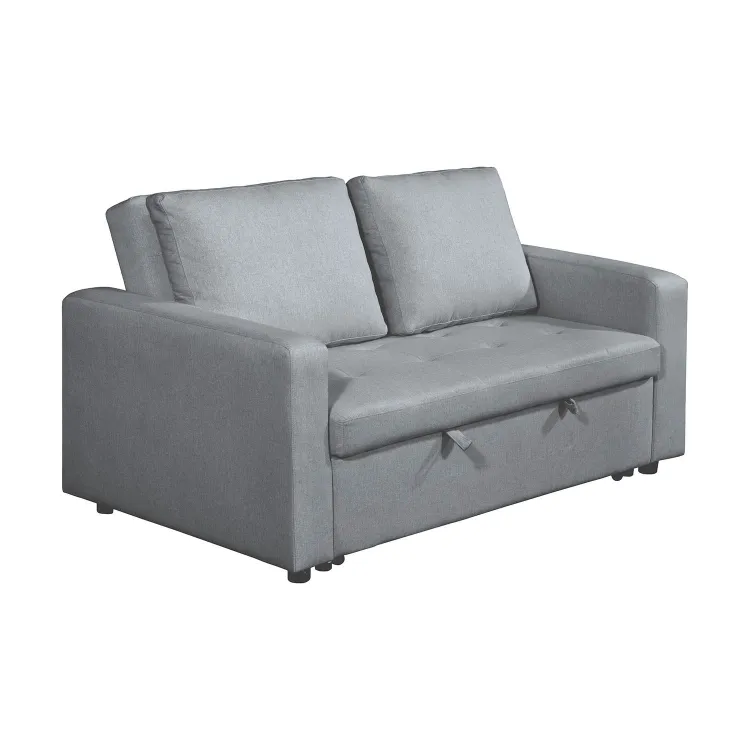 Sofá cama fabricado en textil color gris.